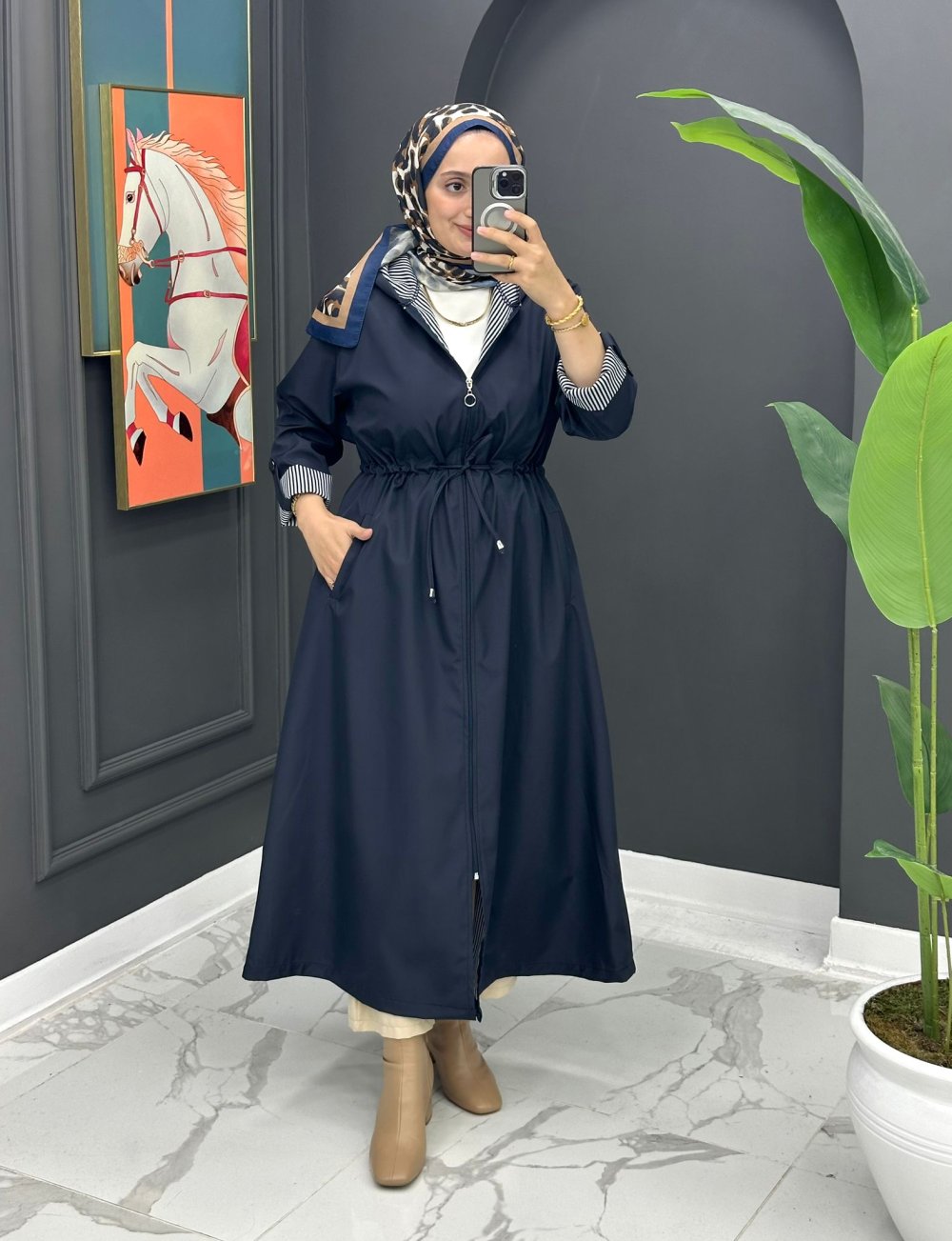 Qarin Uzun Trench - Lacivert