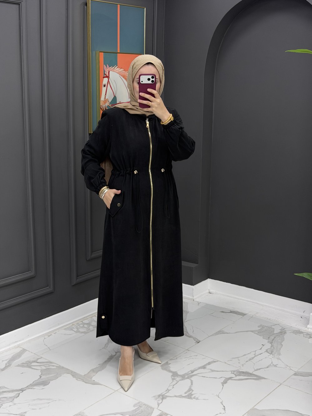 Qupra Kumaş Uzun Kap - Siyah