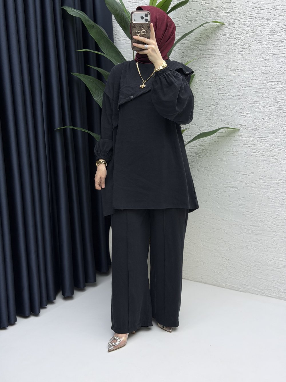 Rezzan Pantalonlu Takım Tesettür Giyim Siyah