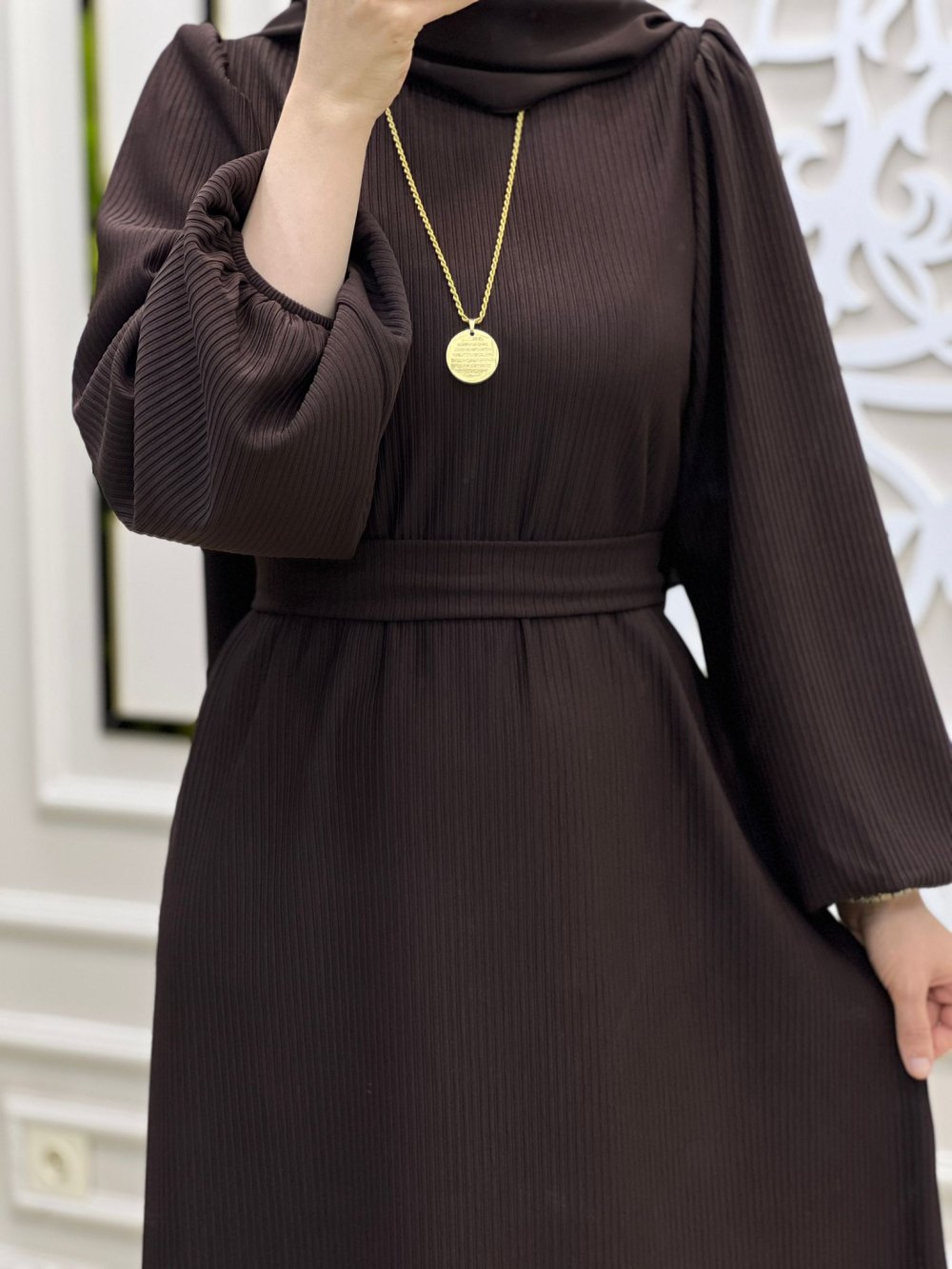 Tesettür Elbise Şik ve zarif elbisemiz stoklarımızda Selvim elbise Kod 13116 kargo ücretsiz Beden 38.40.42.44.46 Boy 140cm Kumaş Türü:1.sınıf pamuklu burgu