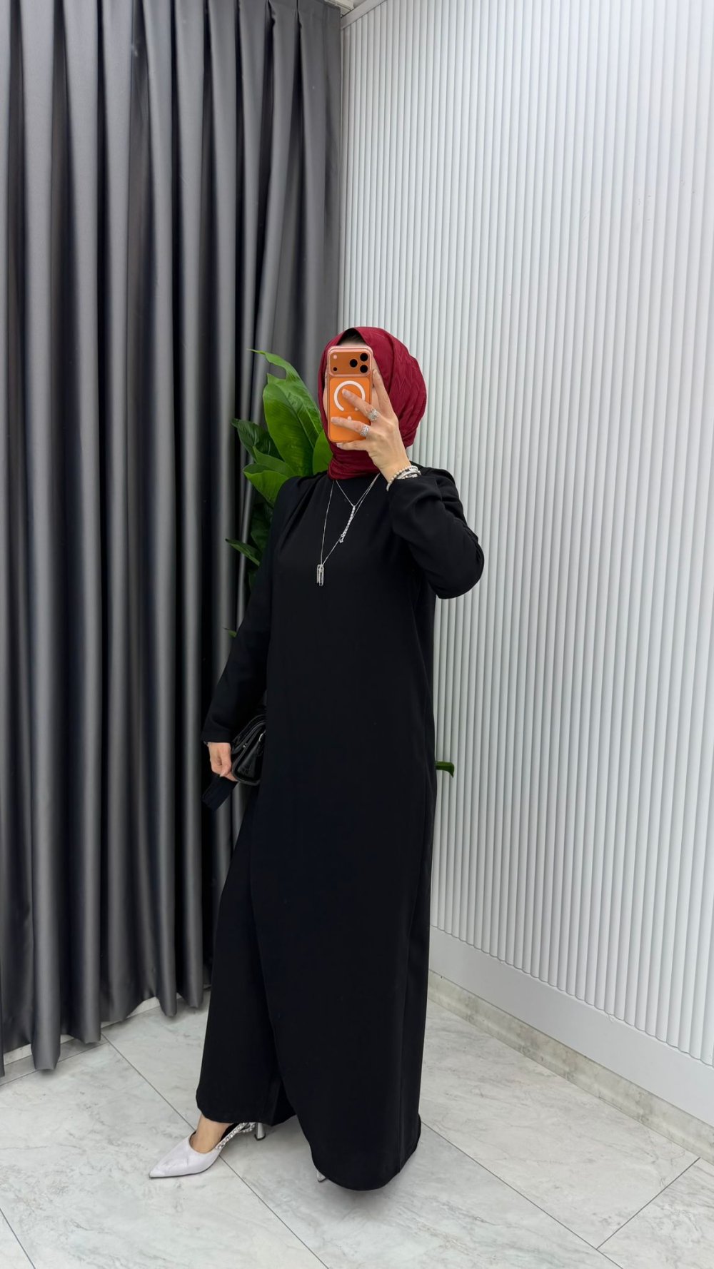 Siyah Kemerli Nalan Tulum Elbise Tesettür Giyim