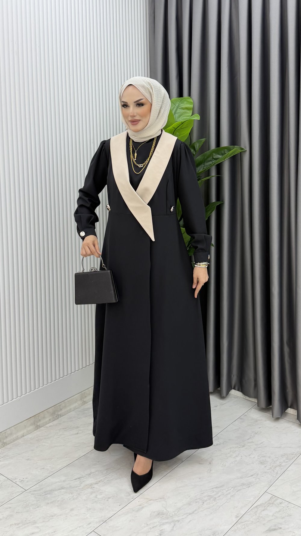 Siyah Yeşim Uzun Ceket Kap Ferace Tesettür Giyim