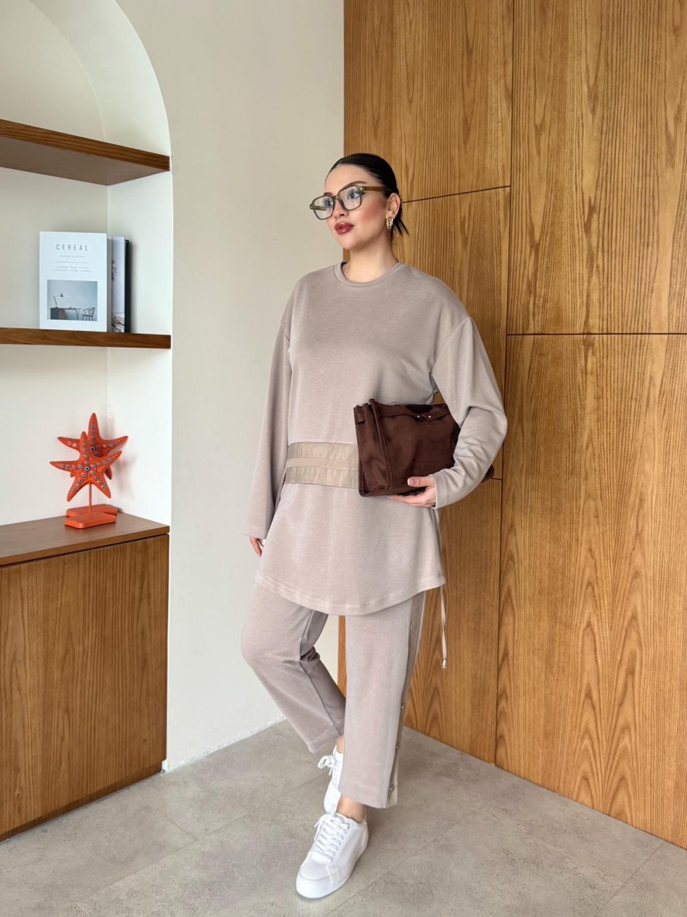 • Pantolon: Yanlardan şerit ve metal düğme detaylıdır.