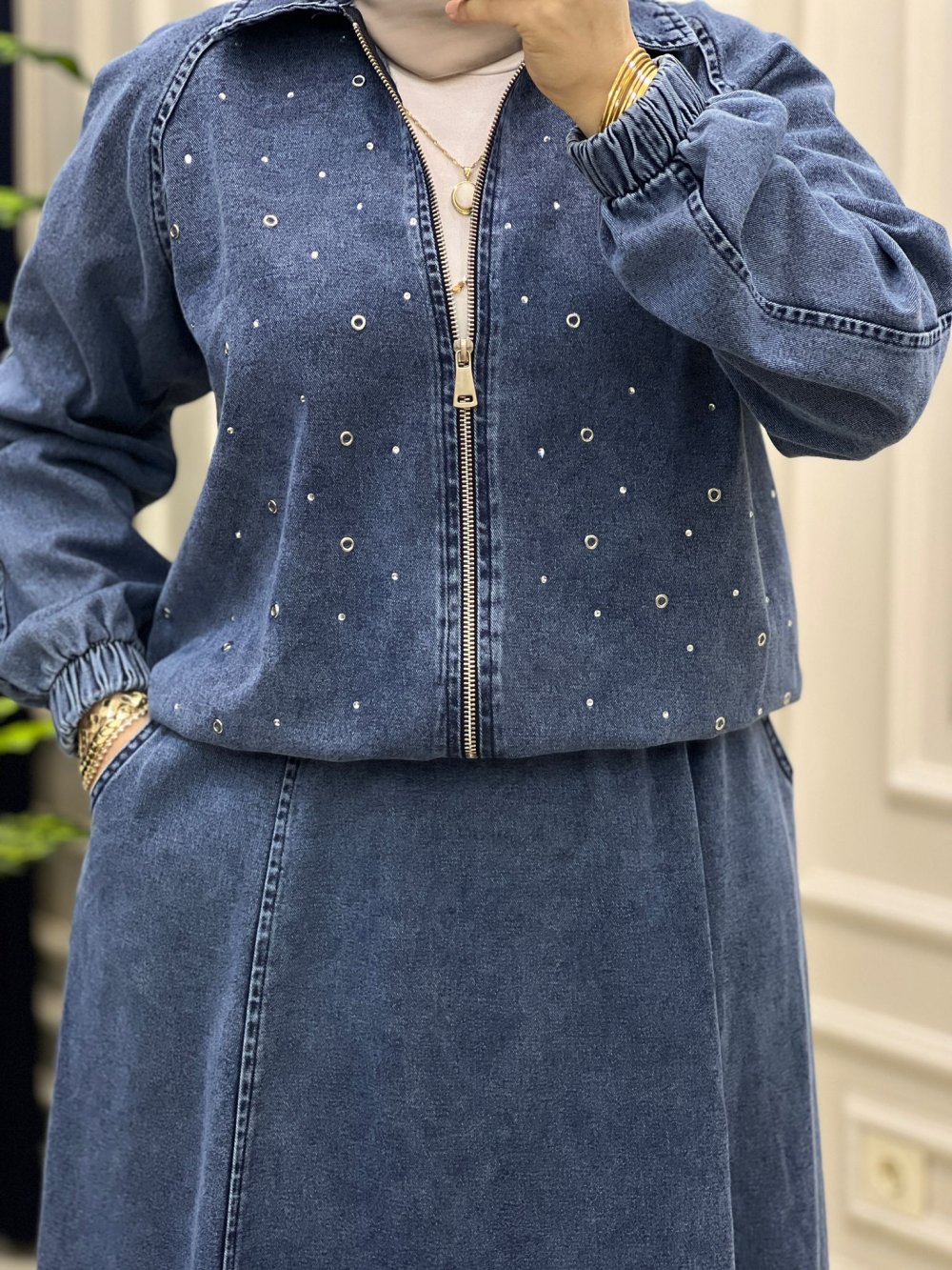 Bayramlik Kot Etek Ceket Takım Trend takım kod.13159 Ceket Beli lastikli Fiyat kargo ücretsiz Beden 38 40 42 44 Kumaş Türü:yumuşak kot Ceket boy: 60.62 cm Etek boy: 93.95 Etek beli lastiklidir Ceplidir Kaliplar rahattir 44 beden 46 bedene uyar