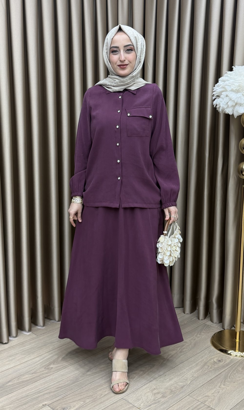 Verda Etek Takım Mürdüm