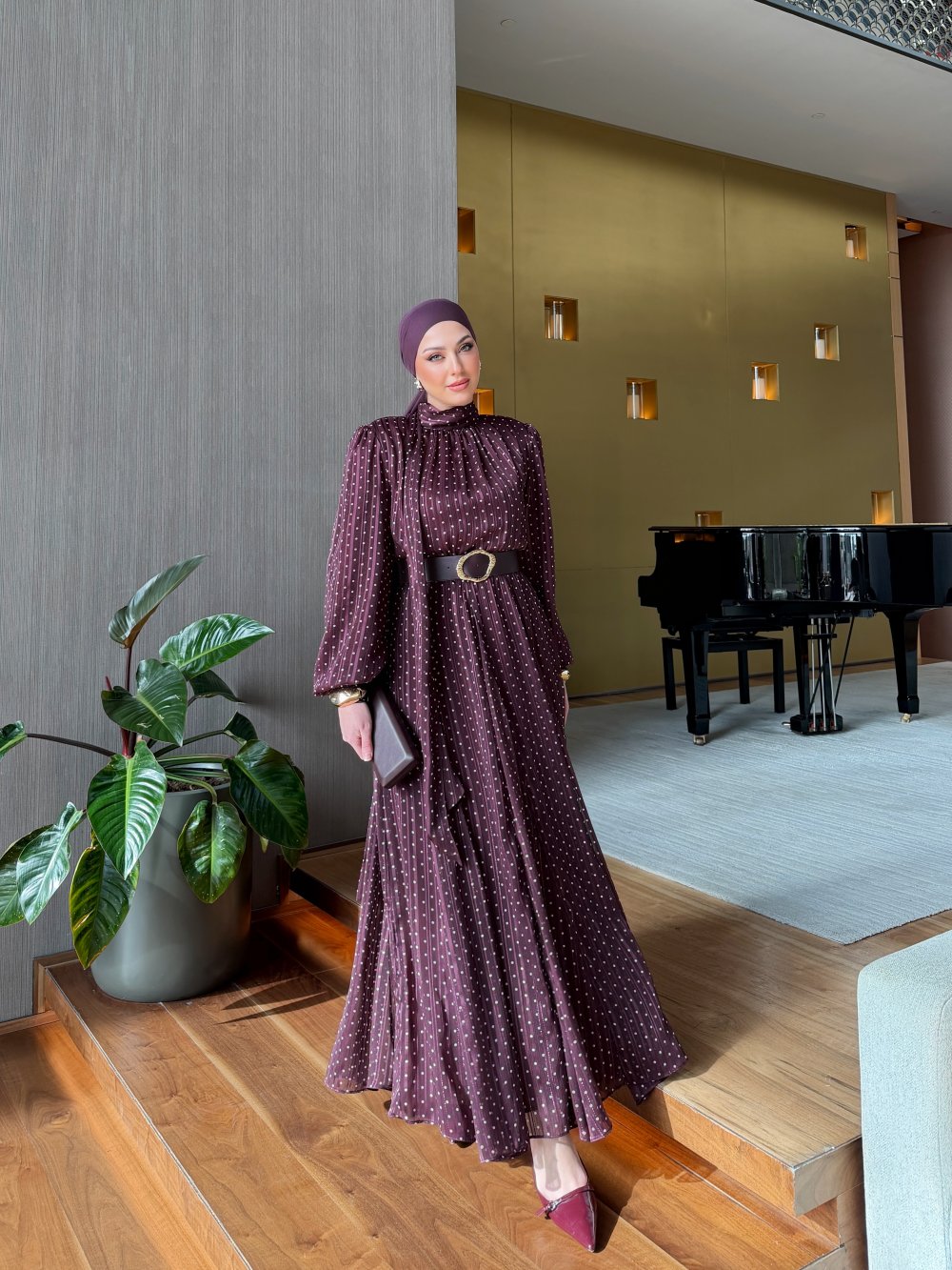 Yaprak Elbise Mürdüm