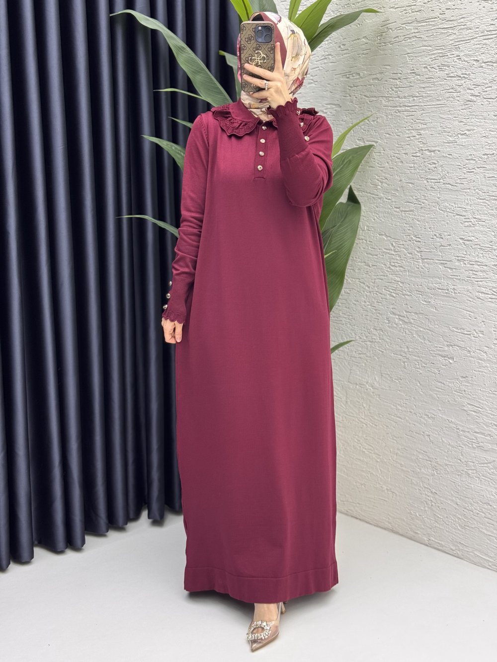 Yasmin Elbise Tesettür Giyim Bordo