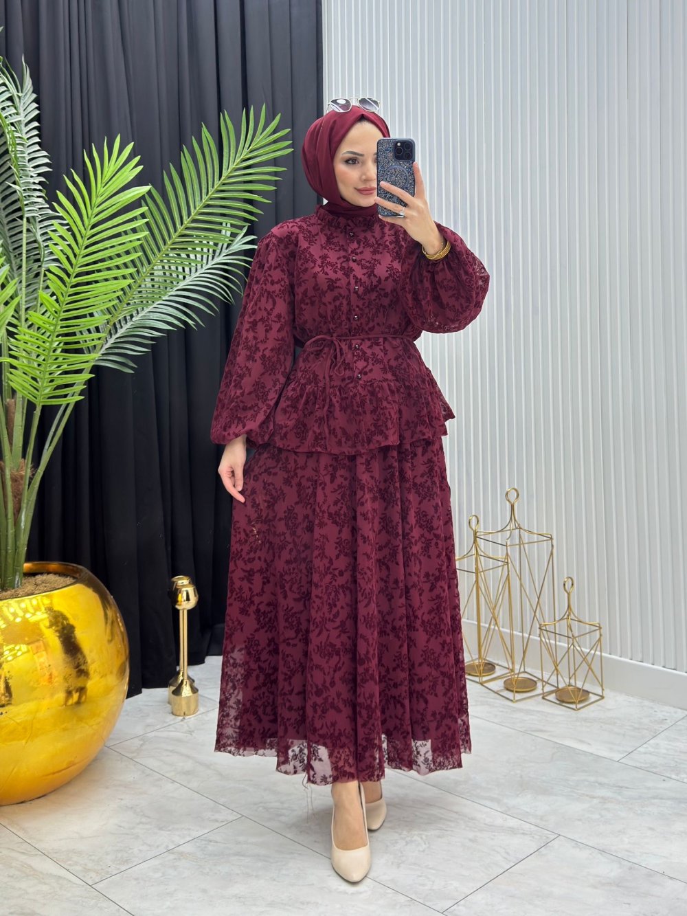 Yonca Dantel Takım Bordo Bordo