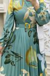 46 Bedene Kadar Elbisemiz Erken gelen bayramlıklar Kod Zambak 12971 Beden 38-40-42-44-46 elbise likralı saten kumaş kollar astarlı şifon kumaş piliseli kemerli arkadan fermuarlı Boyu 142.144